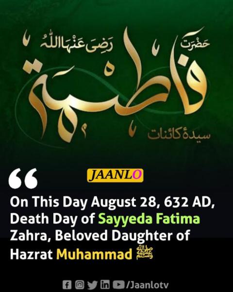 Death day of Fatima Zahra, beloved daughter of Muhammad ﷺ. - mahiG - 08-28-2023 On this day August 28, 632 AD - Death day of Fatima Zahra, beloved daughter of Muhammad ﷺ. Source: Jaanlo |